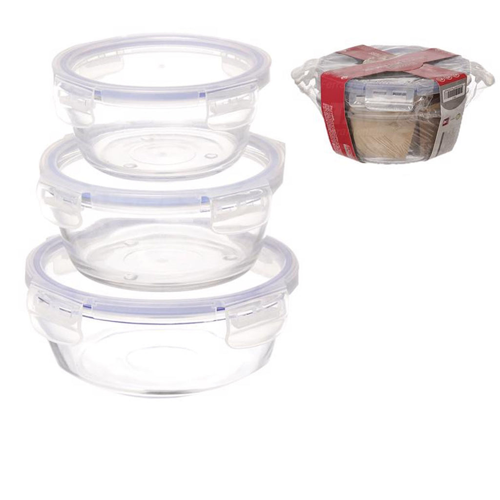 Jogo Pote De Vidro Hermético Redondo Para Marmita Com Trava 3 Peças