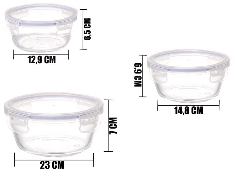 Jogo Pote De Vidro Hermético Redondo P/Marmita Com Trava 3 Pçs possuem Capacidade para