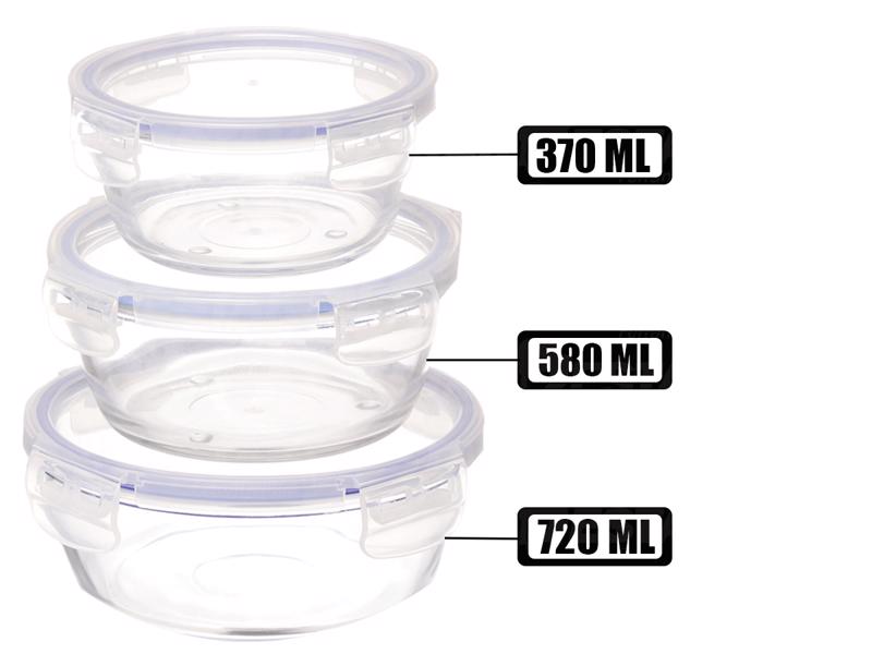 370ml-580ml- 720ml podem ir ao forno,micro-ondas,freezer geladeira.