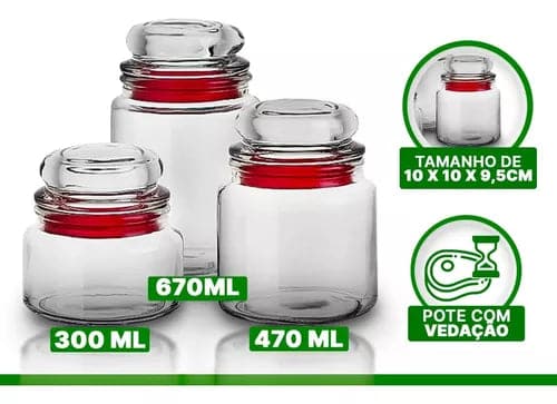 JOGO DE POTES HERMÉTICOS BORRACHA 3 PEÇAS