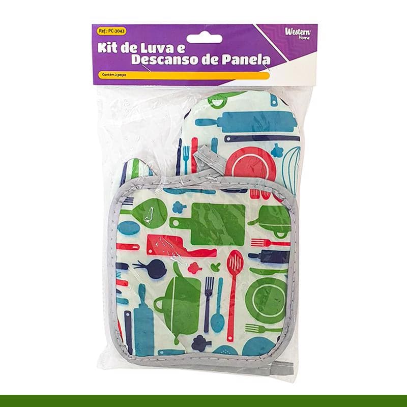 A Luva e o descanso Western servem para assegurar manuseio de pratos quentes.