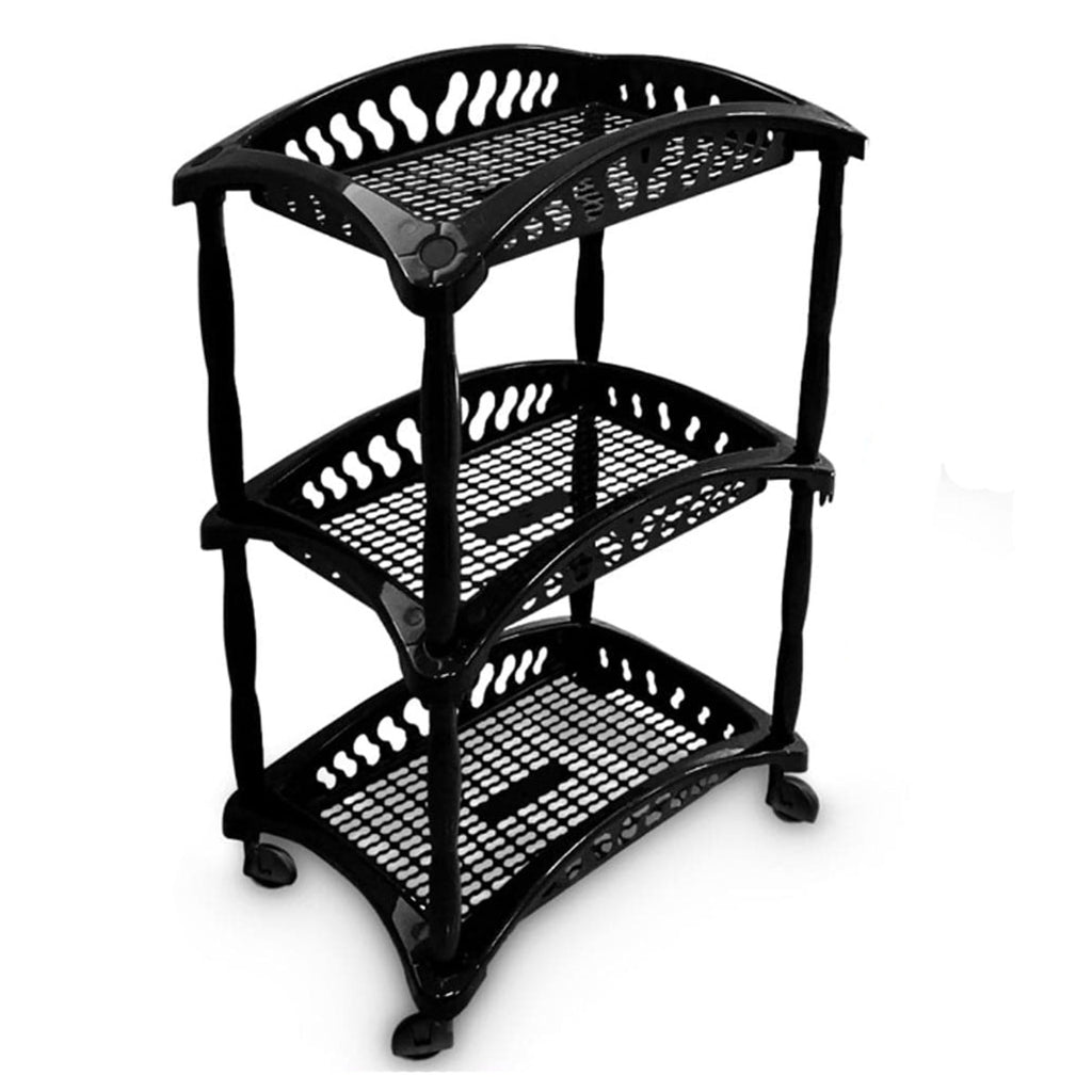 Organizador Vertical Triplo Telado Multiuso Fruteira Preto Com Rodinhas